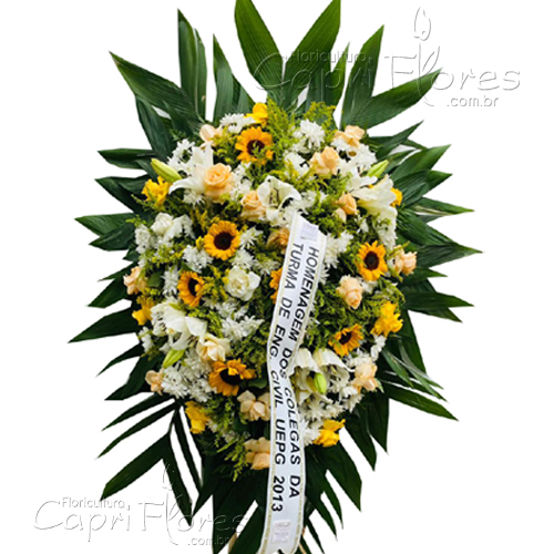 Coroa de Flores com Girassóis e flores Mistas com Rosas Dobradas,